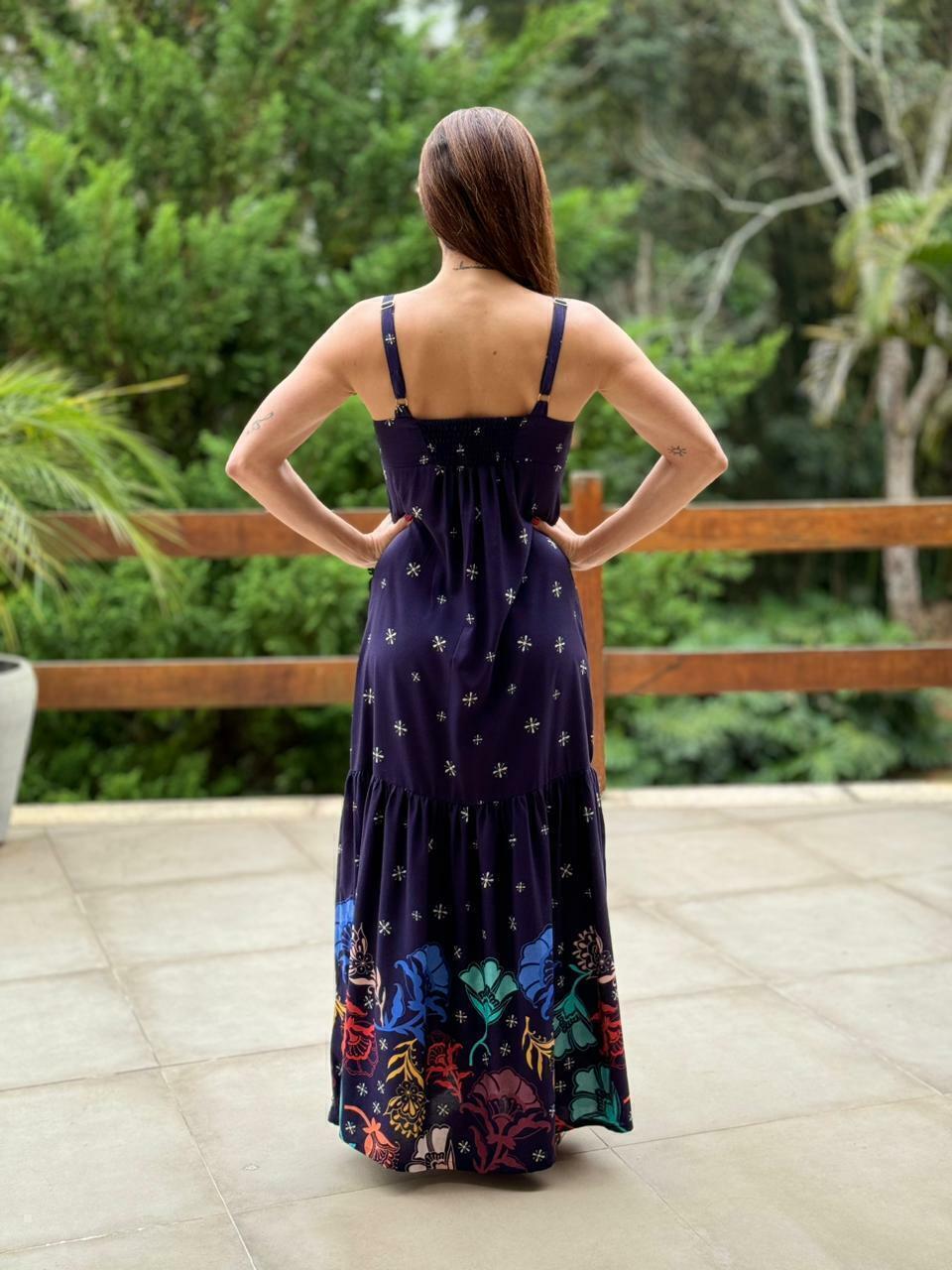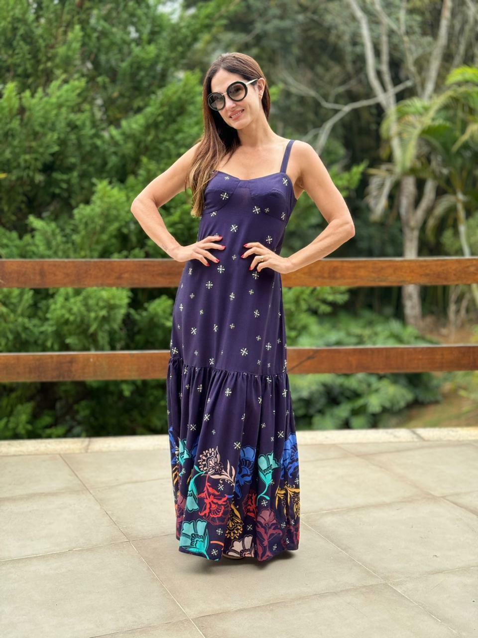 O Vestido Gabi chegou nessa coleção com comprimento mídi, alças reguláveis que permitem o uso de sutiã com conforto e um delicado babado na barra da saia, trazendo movimento e feminilidade ao modelo